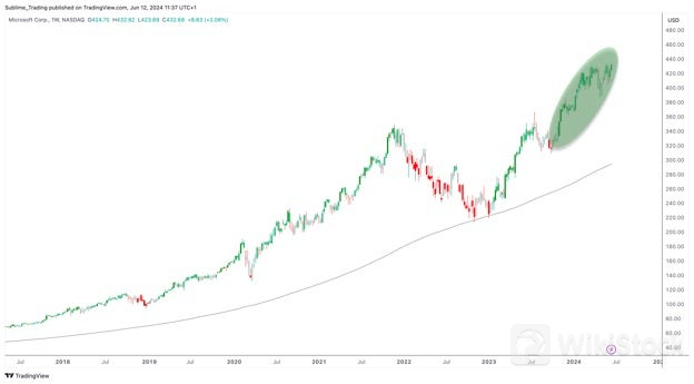 Similar to Microsoft, other industry leaders have faced obstacles. For example, Google temporarily paused an AI-driven search feature that unintentionally spread misinformation. After a period of ups and downs, Microsoft's stock is starting to recover. Since March, the stock hit a high of $430 but then entered a consolidation phase, fluctuating between support at $388 and resistance at $430.