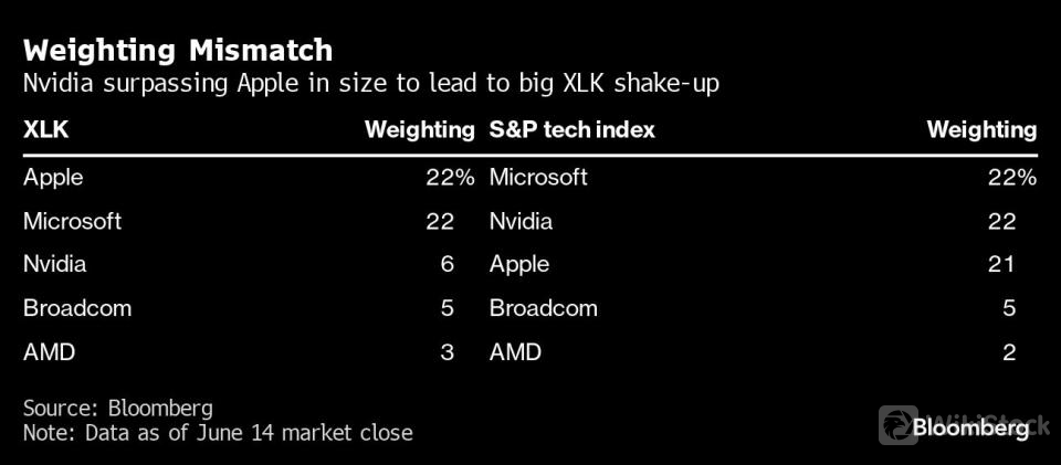 On that basis, Apple and Nvidia are set to reverse their positions in the ETF with the formers weight dropping to 4.5% and the latter rising above 20%, according to calculations sent by the index provider to three market participants familiar with the matter.