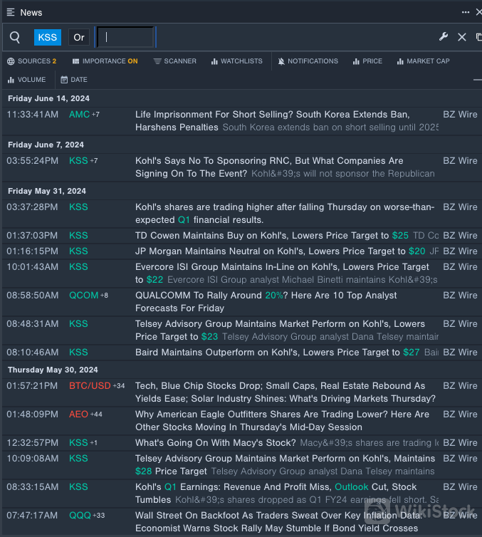 Benzinga Pro's real-time newsfeed alerted to latest Kohls news