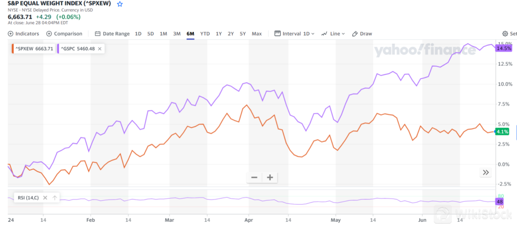The 10 largest stocks as a percentage of the S&P 500‘s overall market cap have surged to 38%, Charles Schwab said in a recent report. Ark Invest’s Cathie Wood stated in a recent webinar that market concentration has reached an extreme, surpassing levels seen during the Great Depression in 1932.