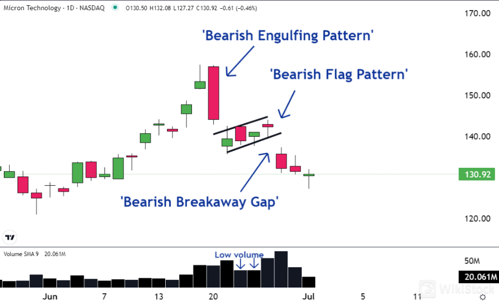 The third pattern is a bearishBreakaway Gap. It forms on a chart when sellers are so aggressive and so ready to get out of their positions that don't care about the price.