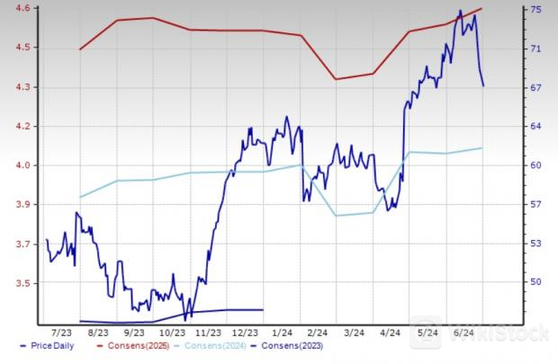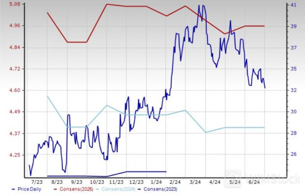 Management anticipates the strong performance of the Famous Footwear brand and gains from the Brand Portfolio segments, leveraging a diversified brand model and the continued execution of strategic priorities to aid CAL's performance. Caleres' focus on consumers' evolving preferences and efforts to drive growth across its omnichannel ecosystem bode well. The Zacks Consensus Estimate for CAL's fiscal 2024 sales and earnings indicates growth of 0.7% and 5.3%, respectively, from the year-ago quarter's reported figures. The consensus estimate for CAL's fiscal 2024 EPS has been unchanged in the past 30 days. The company has a trailing four-quarter earnings surprise of 4.9%, on average. Shares of this Zacks Rank #2 company have rallied 31.9% in the past year.