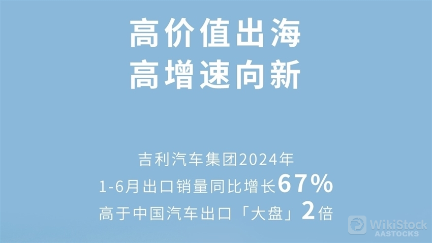 Geely Auto Group disclosed that in 1H24, its cumulative export sales volume reached 197,400 units, a YoY growth of 67%. China's auto exports amounted to 2.93 million units at an export growth rate of 25%, which means that Geely's export growth rate in 1H was 2x higher than China's automobile export market.