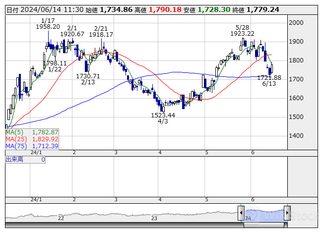 海運業 <日足> 「株探」多機能チャートより/>