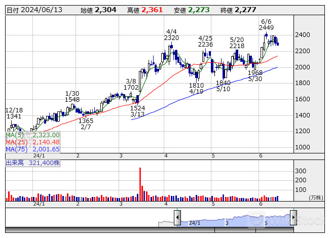 JEH <日足> 「株探」多機能チャートより/>