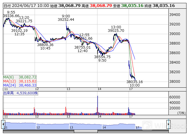 10時の日経平均は746円安の3万8068円、東エレクが96.11円押し下げ