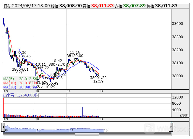 17日13時現在の日経平均株価は前週末比805.90円(-2.08%)安の3万8008.66円で推移。東証プライムの値...