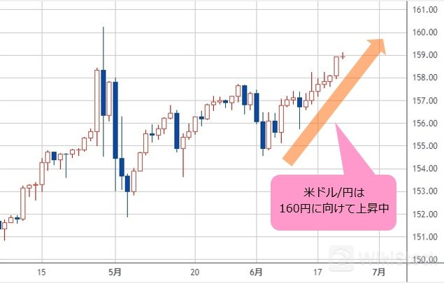 前述のようにスイスフラン/円を筆頭にクロス円が続伸していること、加えて為替監視に日本が再指定されたこともあり、米ドル/円は想定どおり160円超えへと上昇中。