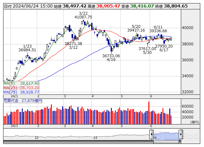 日経平均 <日足> 売買代金 「株探」多機能チャートより/>