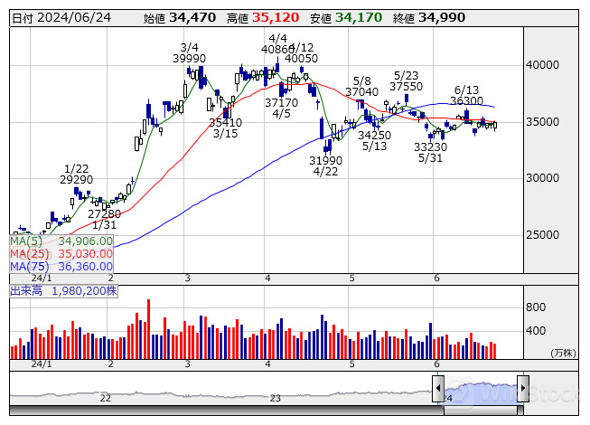 東エレク <日足> 「株探」多機能チャートより/>