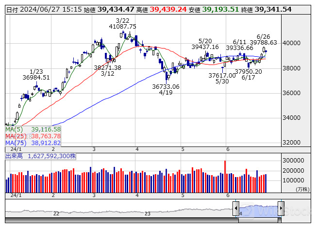 安値 39193.51(10:15)