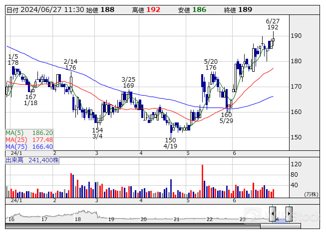 ロボホーム <日足> 「株探」多機能チャートより/>