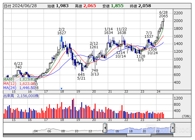 トーカロ <月足> 「株探」多機能チャートより/>