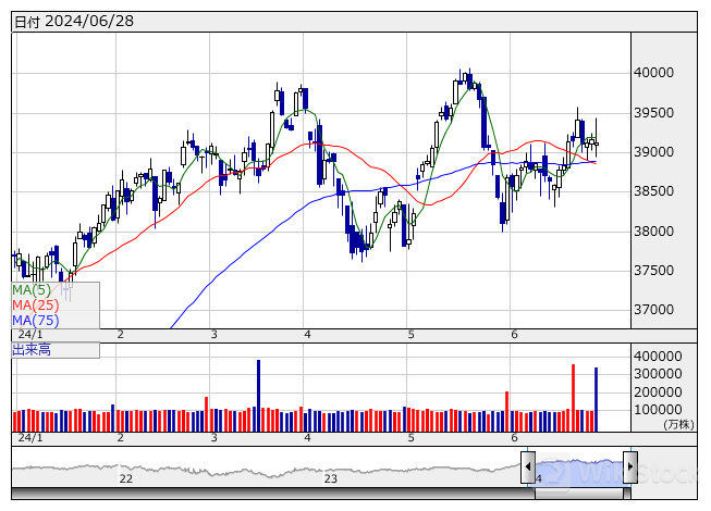 シカゴ日経225先物 (円建て) 39790 ( +170 )