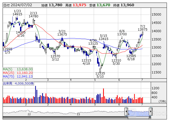 ソニーG <日足> 「株探」多機能チャートより/>