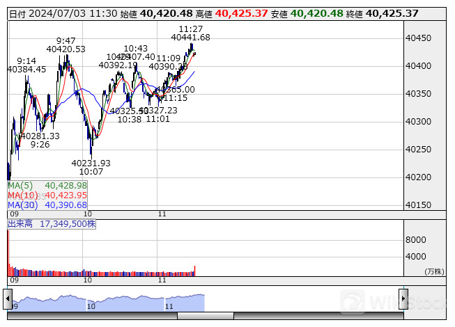 日経平均 <1分足> 「株探」多機能チャートより/>