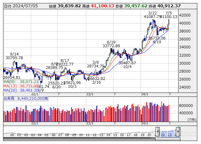 日経平均 40913.65( +332.89) 売買高16億3530万株 売買代金 4兆1303億円
