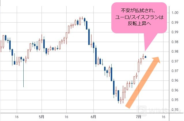 そのためユーロ/スイスフランも反発(=スイスフラン安)しました。