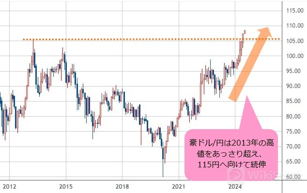 利上げの可能性が残る豪ドル/円は115円超えへ