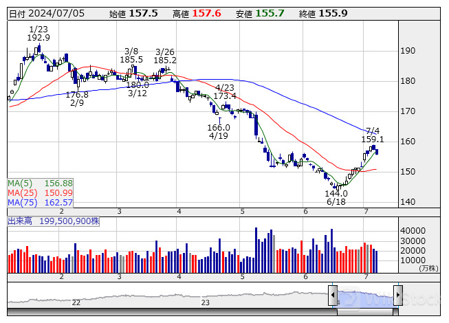 NTT <日足> 「株探」多機能チャートより/>