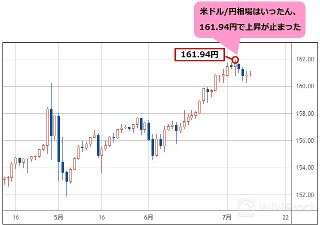 米ドル/円相場はいったん、161.94円で上昇が止まりました。