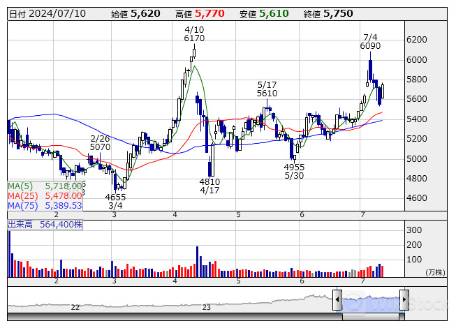 サイゼリヤ <日足> 「株探」多機能チャートより/>