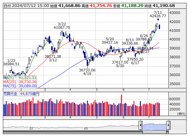 日経平均 <日足> 売買代金 「株探」多機能チャートより/>
