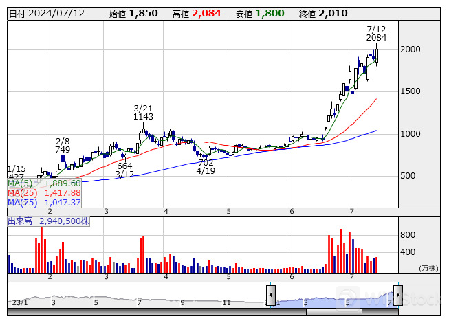 エレメンツ <日足> 「株探」多機能チャートより/>