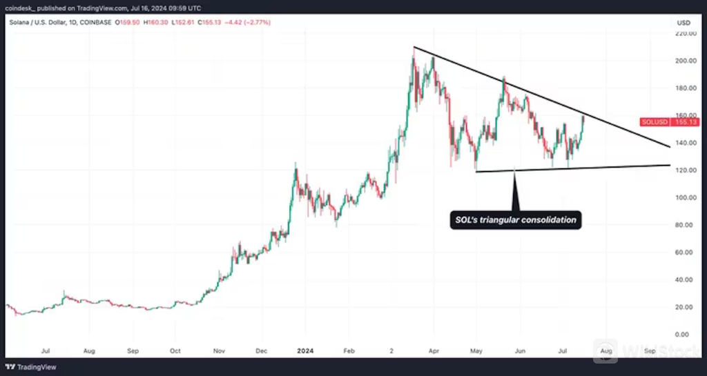 プログラマブルブロックチェーン、ソラナ(Solana)のトークンであるSOLの次の動きのヒントを探している暗号資産(仮想通貨)トレーダーは、数カ月続く三角形持ち合いのパターンを注視すべきだ。