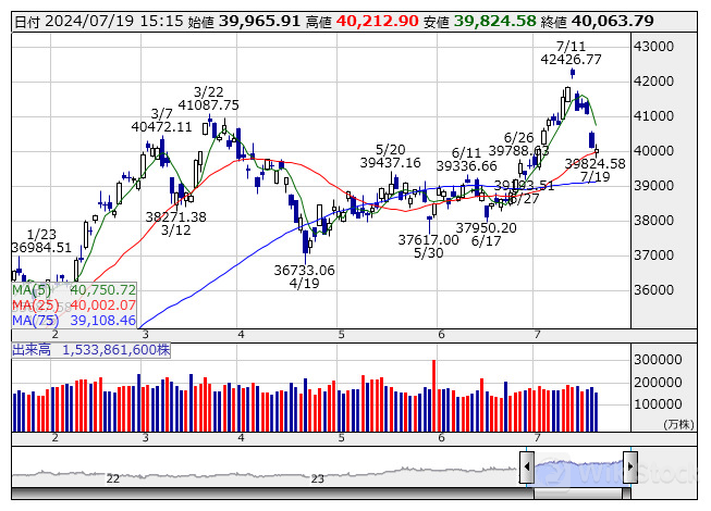 日経平均 <日足> 「株探」多機能チャートより/>