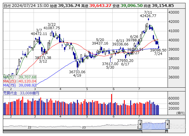 日経平均 <日足> 売買代金 「株探」多機能チャートより/>