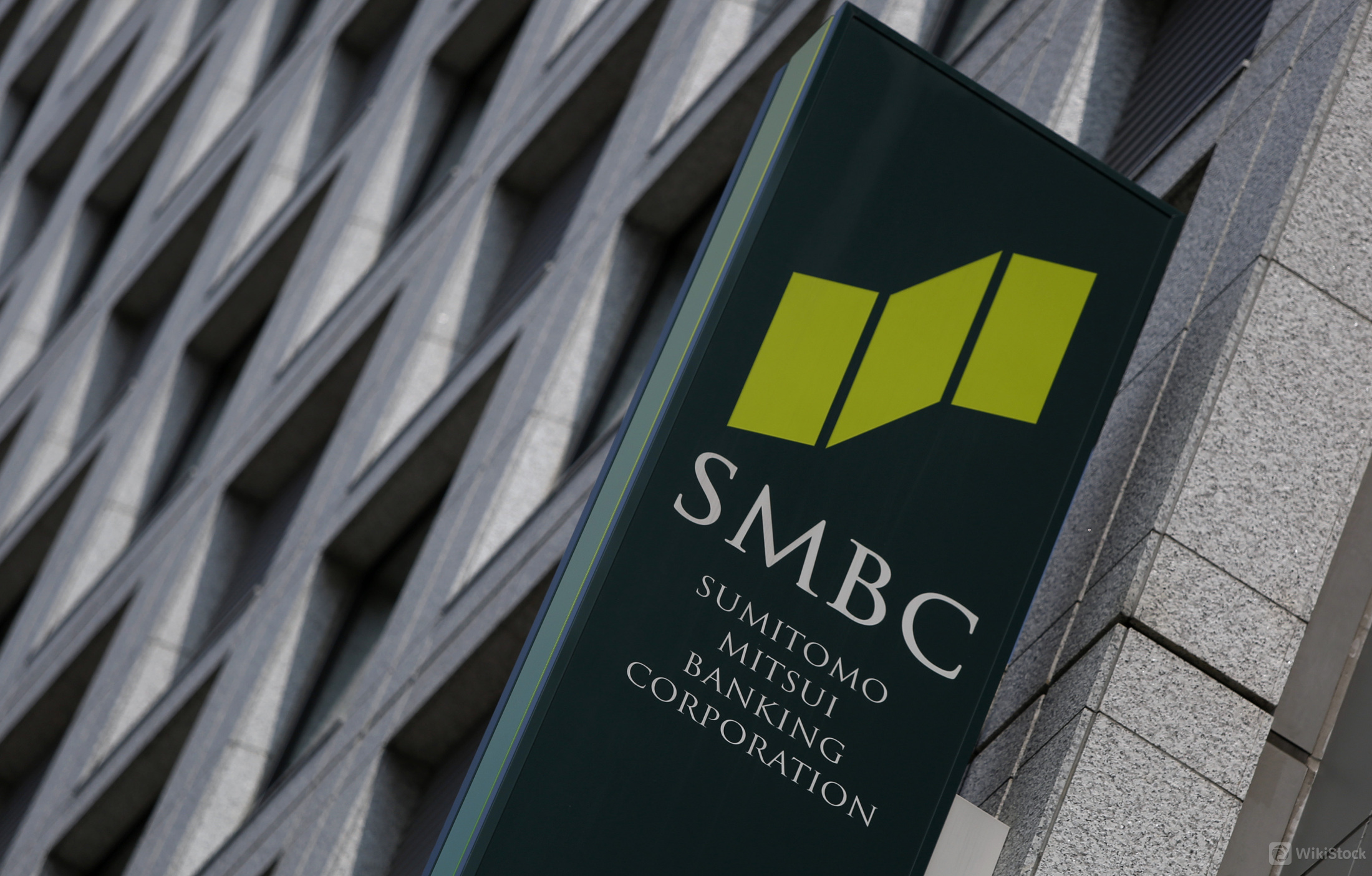 7月26日、三井住友フィナンシャルグループ傘下の三井住友銀行(SMBC)は欧州でプライベートクレジットのファンドを設立したと発表した。写真は三井住友銀行のロゴ。2014年7月、都内で撮影(2024年 ロイター/Yuya Shino)/>