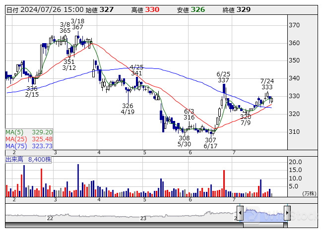 森組 <日足> 「株探」多機能チャートより/>