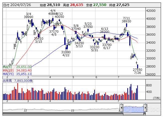 東エレク <日足> 「株探」多機能チャートより/>