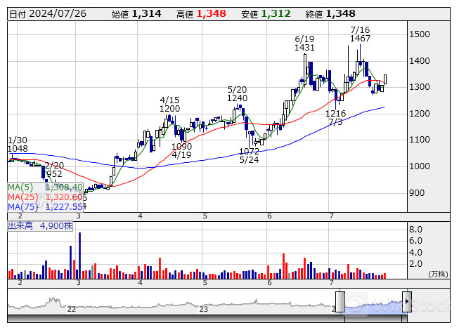 ランドネット <日足> 「株探」多機能チャートより/>