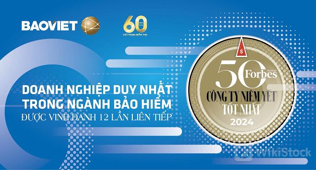 Tạp chí Forbes Việt Nam vừa công bố “Danh sách 50 công ty niêm yết tốt nhất Việt Nam năm 2024”. Trong đó Bảo Việt là đại diện duy nhất ngành bảo hiểm 12 năm liên tiếp được vinh danh trong “Danh sách 50 công ty niêm yết tốt nhất” do Forbes công bố.