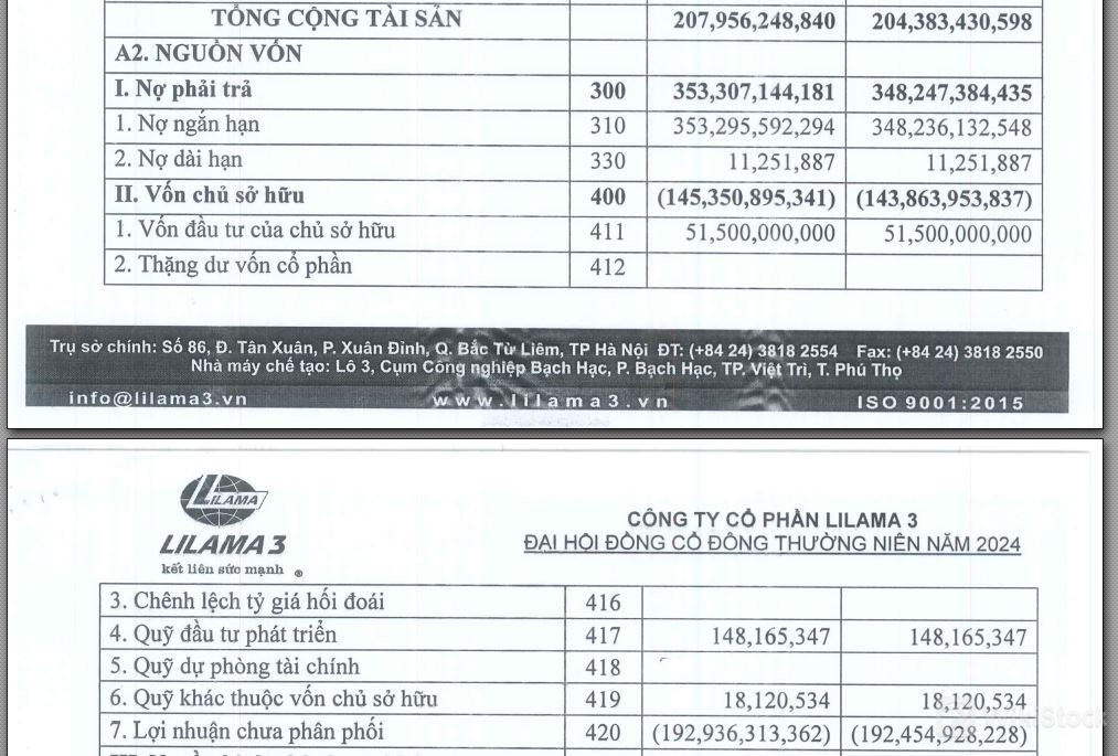 Những năm qua, bức tranh kết quả hoạt động của LILAMA 3 không mấy khả quan khi báo cáo tài chính kiểm toán của doanh nghiệp ghi nhận vốn chủ sở hữu ở mức âm. Để xử lý vấn đề này, dự kiến tại ĐHCĐ tổ chức trực tuyến vào ngày 27/6/2024, LIAMA sẽ trình thông qua phương án phát hành hơn 138 triệu cổ phiếu nhằm hoán đổi nợ cho ông Doãn Thanh Tuấn, hiện là thành viên HĐQT, Phó Tổng Giám đốc của doanh nghiệp.