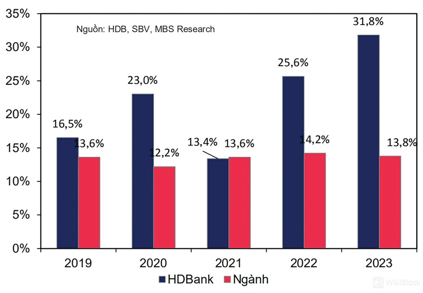 Tăng trưởng tín dụng của HDB so với toàn ngành
