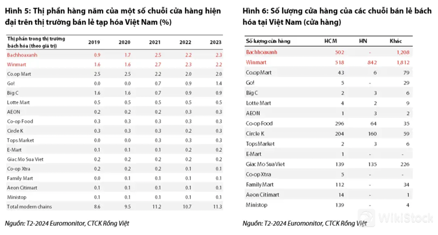 Theo đánh giá của Chứng khoán Rồng Việt, dựa trên khoảng 12% thị phần kênh hiện đại so với xấp xỉ 84% thị phần của cửa hàng tạp hóa nhỏ lẻ, cho thấy tiềm năng tăng trưởng đáng kể trong việc mở rộng thị phần của các chuỗi này trong những năm tới...