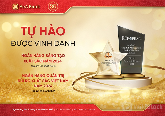 Ngân hàng TMCP Đông Nam Á (SeABank, HOSE: SSB) vừa được hai tổ chức quốc tế The European và The CEO View bình chọn và trao giải thưởng “Ngân hàng Quản trị rủi ro xuất sắc Việt Nam năm 2024 - The Risk Management Bank of The Year Vietnam 2024” và “Ngân hàng sáng tạo xuất sắc năm 2024 - Innovation Excellence Award 2024” dựa trên những kết quả vượt trội trong kinh doanh, sự sáng tạo về sản phẩm dịch vụ và ứng dụng công nghệ tiên tiến.