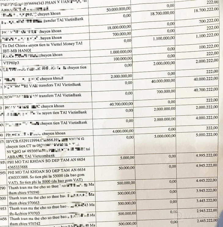 Các giao dịch bất thường từ tài khoản ABBank của ông P. mà ông nói rằng không phải do mình thực hiện - Ảnh: B.D.
