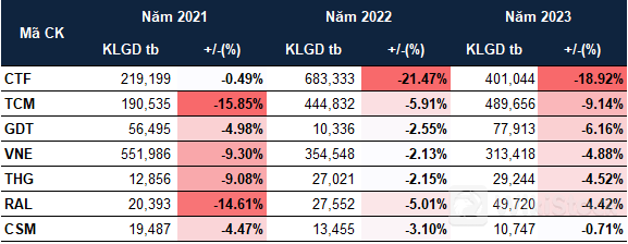Ở phía ngược lại, chỉ có 7 cổ phiếu thường giảm, gồm: CTF, TCM, GDT, VNE, THG, RAL và CSM.