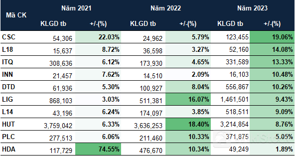 Cổ phiếu trên sàn HNX tăng giá trong tất cả tháng 7 giai đoạn từ 2021-2023![]() |