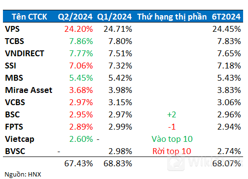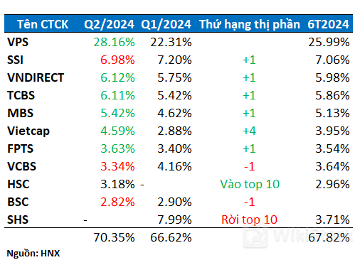 HNX quý 2/2024: Thị phần của Chứng khoán VPS sụt nhẹ