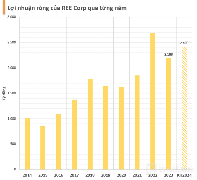 Sau gần nửa thế kỷ phát triển, REE hiện đã trở thành tập đoàn đa ngành hoạt động trong các lĩnh vực như năng lượng, nước và môi trường, bất động sản và dịch vụ M&E. Năm 2024, doanh nghiệp này đặt mục tiêu mang về 10.588 tỷ đồng doanh, 2.409 tỷ đồng lợi nhuận trước thuế, lần lượt tăng 23,5% và 10,1% so với thực hiện năm 2023.