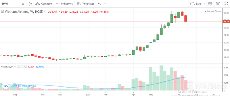 Kể từ đầu tháng 7, cổ phiếu HVN liên tục có động thái điều chỉnh. Sau phiên 16/7, thị giá HVN trở về mốc 31.250 đồng/cp, thấp nhất kể từ giữa tháng 6.