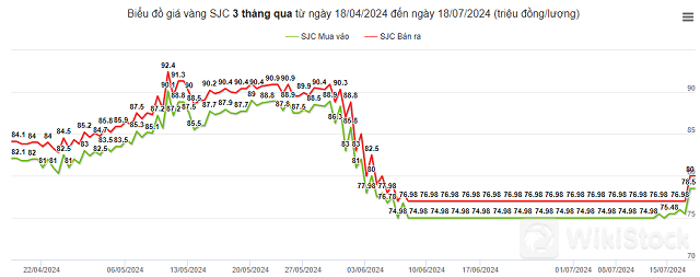 Sáng 18/07/2024, Công ty SJC niêm yết giá vàng miếng SJC tại mức 78.5 - 80 triệu đồng/lượng ở chiều mua – bán, tăng 2.52 – 3.02 triệu đồng/lượng mỗi chiều so với ngày hôm trước. Như vậy, giá vàng miếng SJC đã bắt đầu bật tăng sau nhiều ngày đứng im.