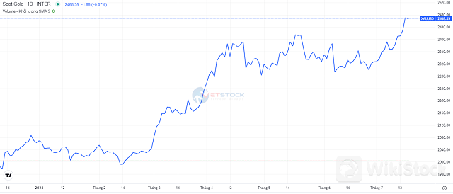 Trong thời gian tới, giá vàng thế giới có thể tiếp cận vùng đỉnh 2,500-2,600 USD/oz, nhưng về yêu tố kỹ thuật đây là vào vùng “quá mua” nên sẽ có những nhịp điều chỉnh giảm mạnh.