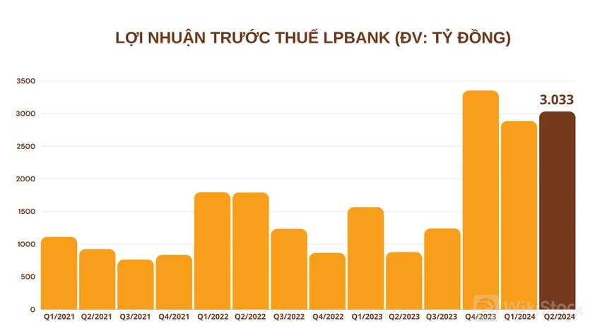 Cụ thể, LPBank ghi nhận lợi nhuận trước thuế 6 tháng đầu năm đạt 5.919 tỷ đồng (tăng 142%). Trước đó, lợi nhuận trước thuế quý I chỉ đạt hơn 2.886 tỷ đồng. Với lợi nhuận quý II ở mức trên 3.033 tỷ đồng, LPBank ghi nhận tăng trưởng lợi nhuận ở 2 quý liên tiếp và tăng gấp gần 3,5 lần cùng kỳ năm trước.