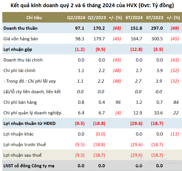 HVX đã lỗ lũy kế hơn 82 tỷ đồng sau nửa đầu năm 2024![]() |